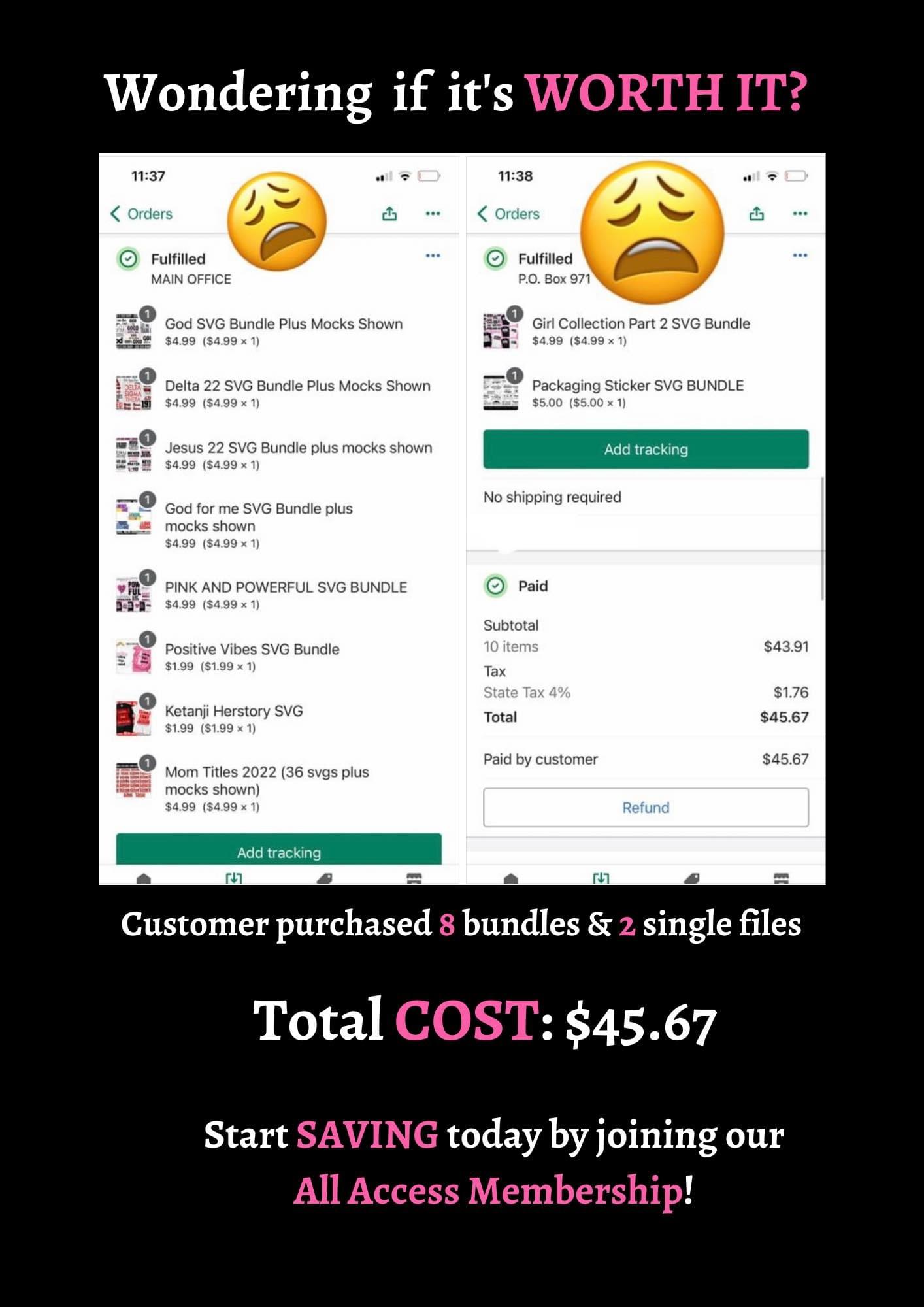 If you've been spending a great deal of time trying to come up with your own designs OR you'd rather have access to ready-to-go designs to increase productivity, then our ALL ACCESS membership is the OFFER FOR YOU!